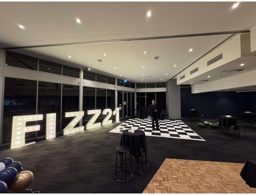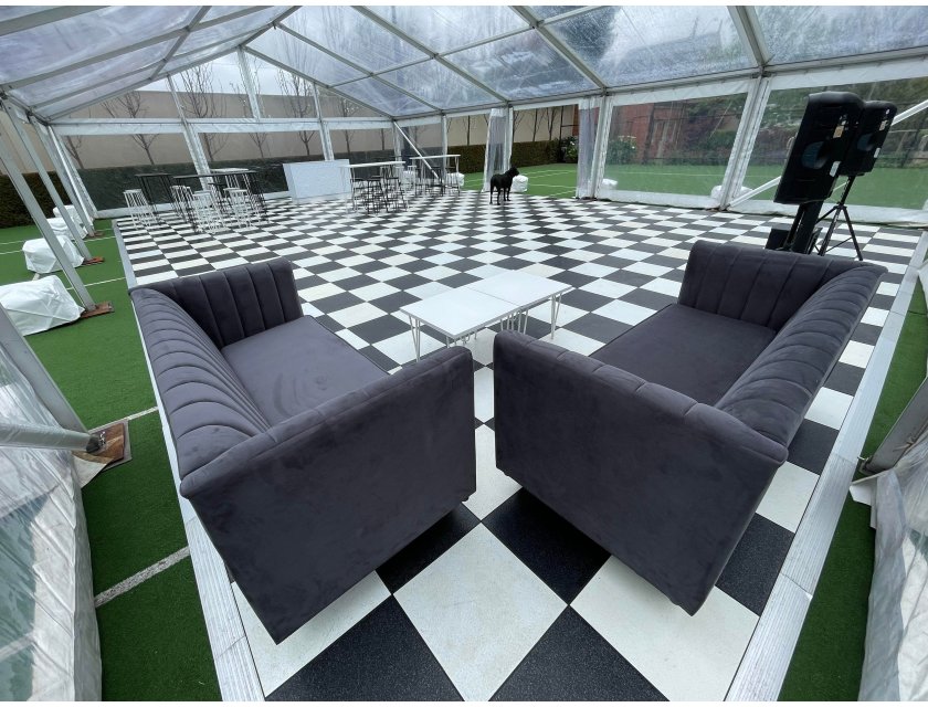 Black & White Tile Dancefloor, with edging. Designed for a flat surface, generally indoors. Not suitable for grass.