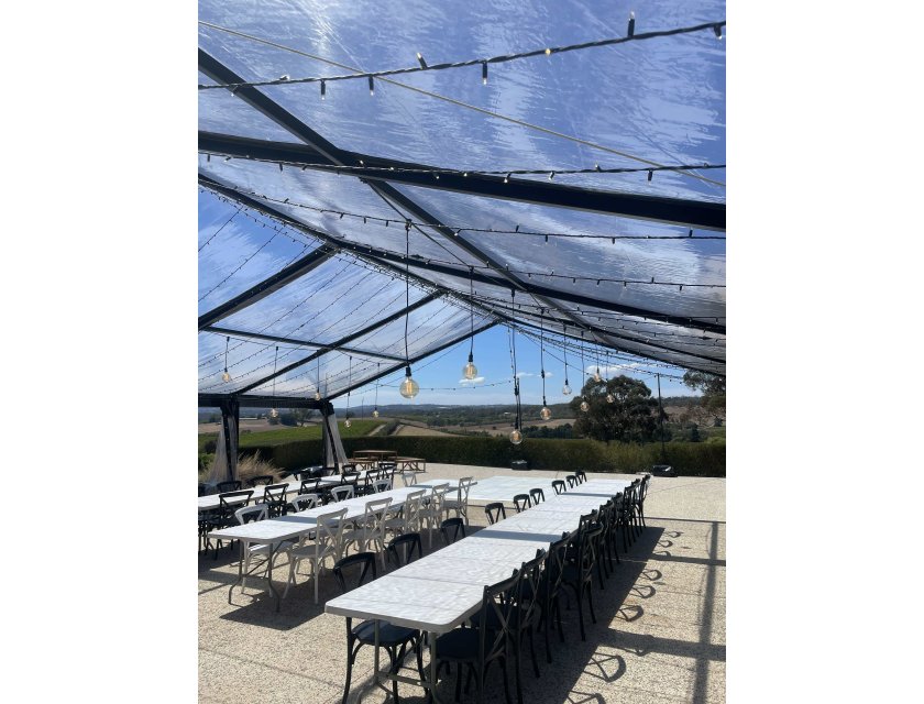 10m Multi Height Edison Strand with oversized Edison light bulbs.